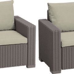 С ранних утренних часов до позднего ночного времени Вы можете отдыхать и расслабляться в комфортном кресле Калифорния. Стильная текстура, имитирующая ротанговое плетение, исключительно широкие подлокотники, подушки сиденья и спинки - благодаря им это кресло идеально подходит для того, чтобы отдыхать в летний день. А поскольку оно изготовлено из устойчивого к погодным условиям пластика с защитой от ультрафиолетового излучения, Вы будете им наслаждаться на протяжении многих сезонов, не заботясь об уходе.